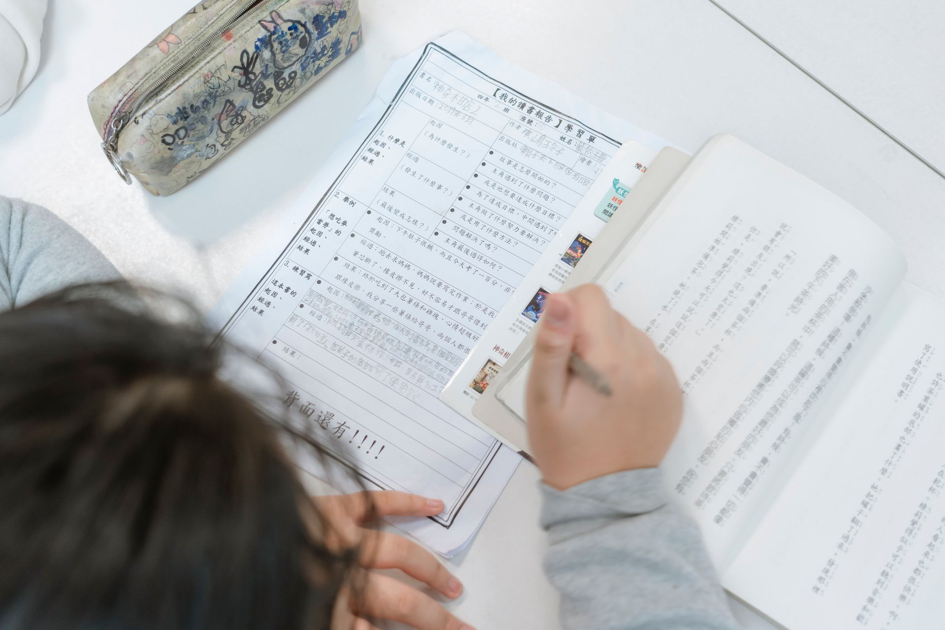 ▲孩子正在專注地撰寫「我的讀書報告」學習單