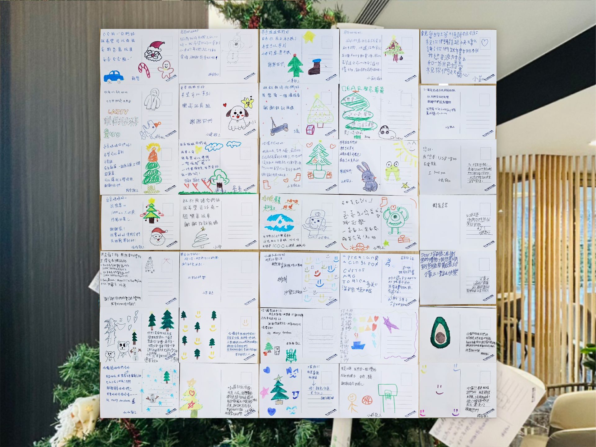 ▲「奇歷兒少之家」的孩子們親手在明信片上,寫下自己的小小聖誕心願。