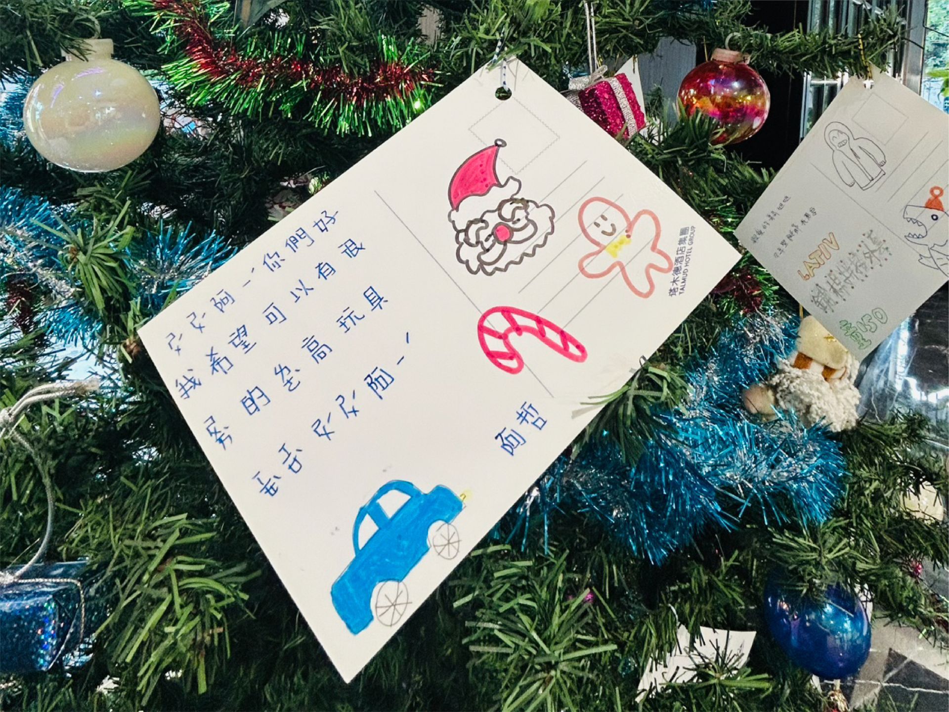 ▲【塔木德酒店CLASSIC 台中台中館】的聖誕心願樹上,掛滿孩子們的心願